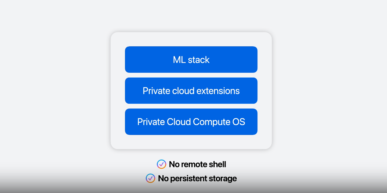 Their new system extends Apple's privacy protections to servers designed for private AI processing. The Private Cloud Compute OS runs on a new operating system with: